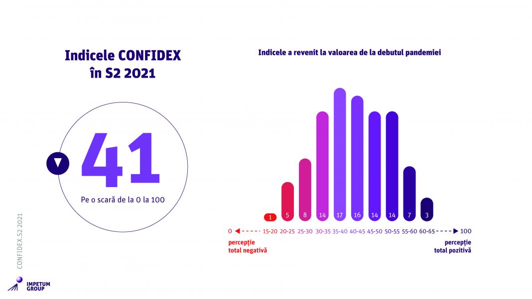 ,,Scăderea indicelui CONFIDEX la un nivel similar cu cel de la începutul pandemiei vine pe fondul accentuării unor efecte pe termen lung ale crizei Covid-19, precum perturbările din lanțurile de aprovizionare ce afectează în mod direct producția industrială. De asemenea, sunt și câteva efecte pe termen scurt, generate de criza politică și de valul IV care destabilizează perspectivele forței de muncă. CONFIDEX S2 2021 ne arată nu doar că managerii și-au pierdut o bună parte din încredea în economie, ci și o posibilă reintrare în recesiune, indicată de un procent foarte mare, 41% dintre manageri. Practic înțelegem că se suprapun două crize – cea sanitară și perspectiva unei eventualenoi crize economice, în care economia este lovită de scumpirea energiei, creștera prețurilor și alte efectele directe ale crizei sanitare. Iar revenirea din aceste crize este estimată într-un orizont de minimum doi ani, dar chiar trei ani și jumătate pentru economia românească pe ansamblu.” a declarat Andrei Cionca, CEO & Co-founder Impetum Group.