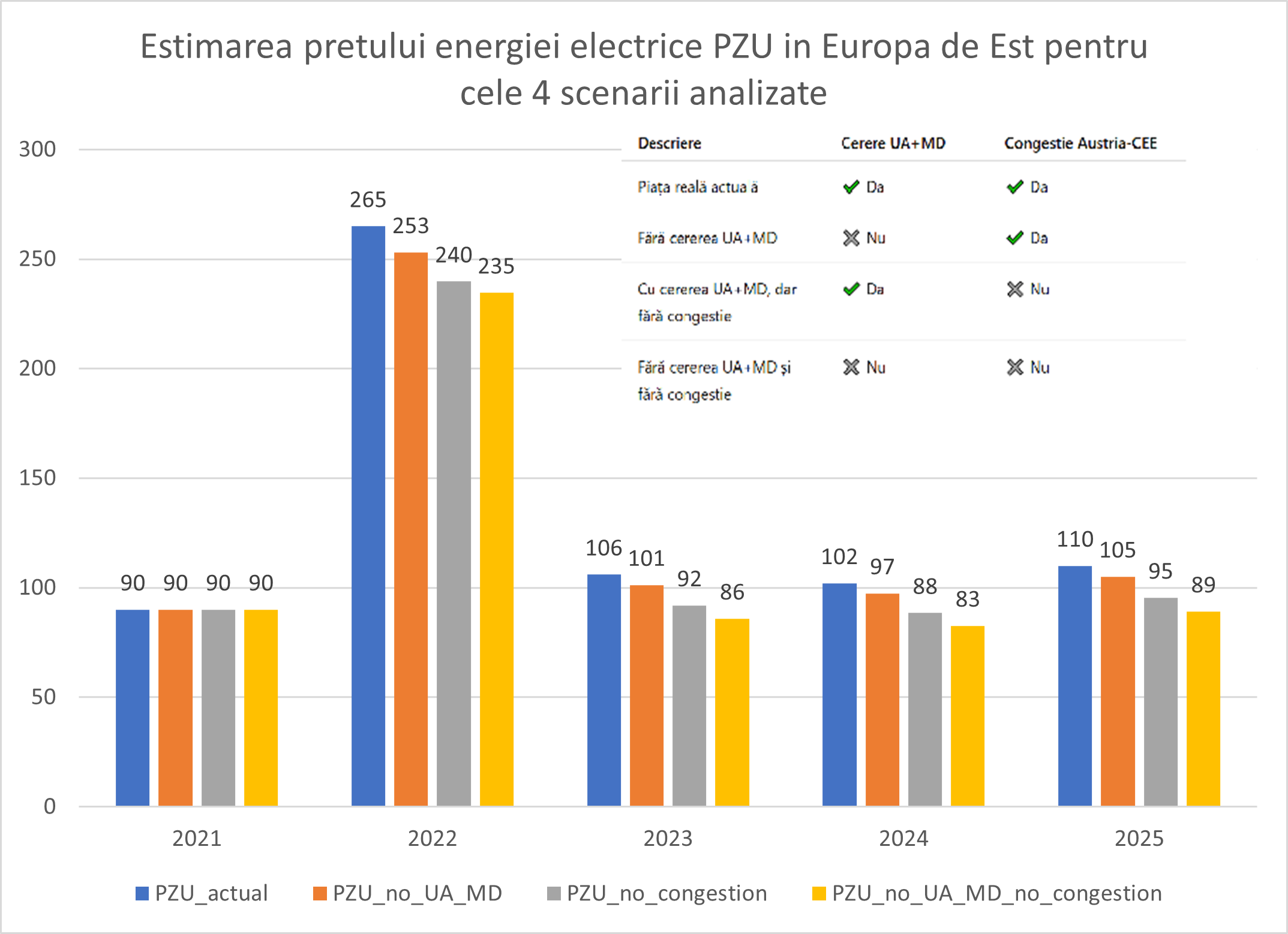 - 2021 Estul Europei (RO) a avut media PZU mai mică decât Vestul (AT+DE), datorită energiei ieftine din Ucraina, lipsa acesteia fiind și una din cauzele creșterii prețului în Europa de Est, care a făcut ca oferta ieftină să fie înlocuită cu creșterea cererii de energie, și implicit creșterea prețului la energie în Estul Europei după anul 2022.