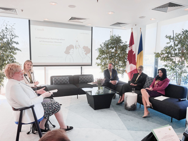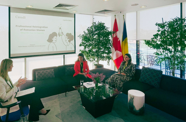 Sprijinirea reintegrării femeilor pe piața muncii promovează egalitatea de gen, reprezentând, totodată, și o strategie economică inteligentă care consolidează familiile, locurile de muncă și economia. Canada a pus în aplicare cu succes un cadru cuprinzător de politici publice pentru a sprijini revenirea femeilor la locul de muncă, care combină concediul de maternitate și parental plătit cu protecția locului de muncă, servicii accesibile de educație timpurie și îngrijire a copiilor, programe de formare și recalificare profesională, precum și standarde de angajare flexibile și incluzive. Dacă România ar investi mai mult în servicii de îngrijire a copiilor, în programe de formare profesională și în reglementări flexibile în materie de ocupare a forței de muncă, acest lucru ar stimula atât economia cât și revenirea femeilor la locul de muncă în condiții demne.” E.S. Gavin Buchan, Ambasadorul Canadei în România.