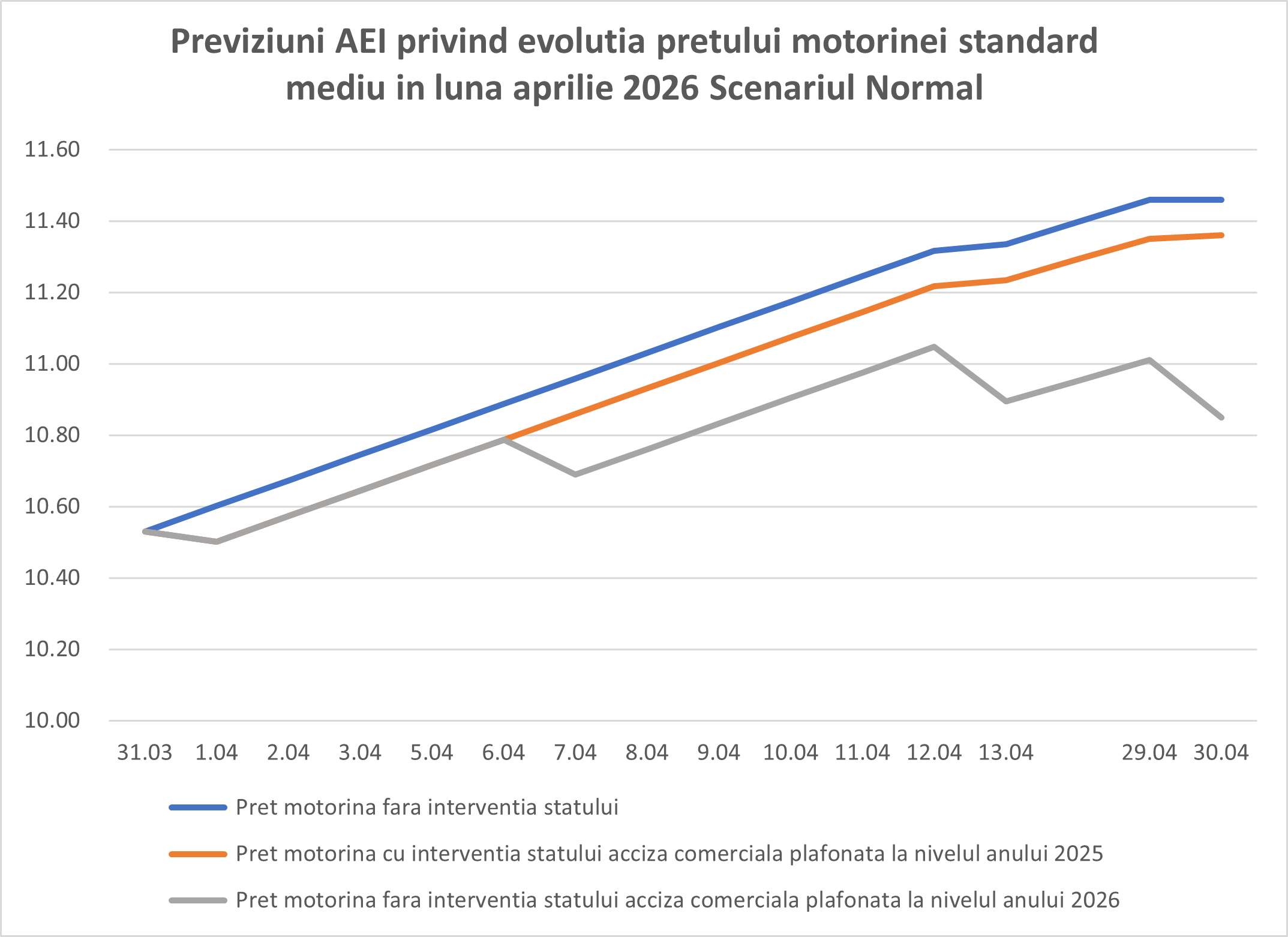 Intrarea în vigoare a unei noi ordonanțe de reducere cu 5% a accizei va produce, cel mai probabil, o nouă corecție descendentă. Însă chiar și cumulul acestor măsuri nu va reuși să schimbe direcția generală – până la mijlocul lunii aprilie, pragul de 11 lei pe litru pentru motorina standard pare inevitabil.