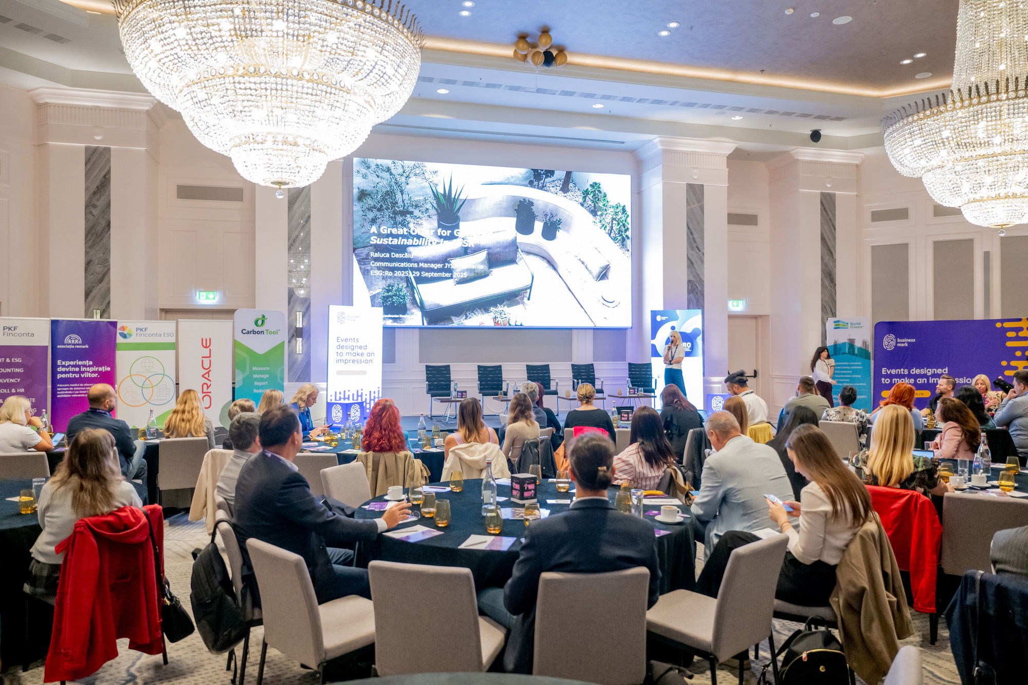 Specialiști și practicieni în domeniul sustenabilității au participat, pe 29 septembrie 2025, la conferința anuală „ESG:Ro – Environmental, Social and Corporate Governance for a Sustainable Future”. Evenimentul organizat de BusinessMark a reunit la JW Marriott Bucharest Grand Hotel 15 reprezentanți din domeniu, ce au discutat despre implementarea eficientă a principiilor ESG și de sustenabilitate.