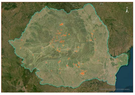 Nota. Harta AEI cu rețelele conductelor amonte si transport GN este realizata pe baza datelor publice cuprinse in PUGurile localitatilor din RO