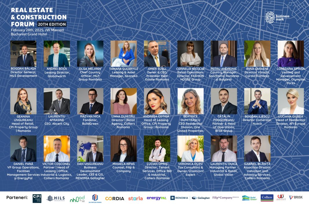 Importanți lideri din real estate vor lua parte, pe 28 februarie 2025, la cea de-a XX-a ediție a „Real Estate & Construction Forum”. Organizat de BusinessMark la JW Marriott Bucharest Grand Hotel, evenimentul va aduce împreună unii dintre cei mai importanți jucători din industrie, ce vor dezbate situația actuală și perspectivele pieței de real estate pentru 2025, în cadrul a patru paneluri cu focus pe sectoarele: retail, industrial & logistics, office, rezidențial.