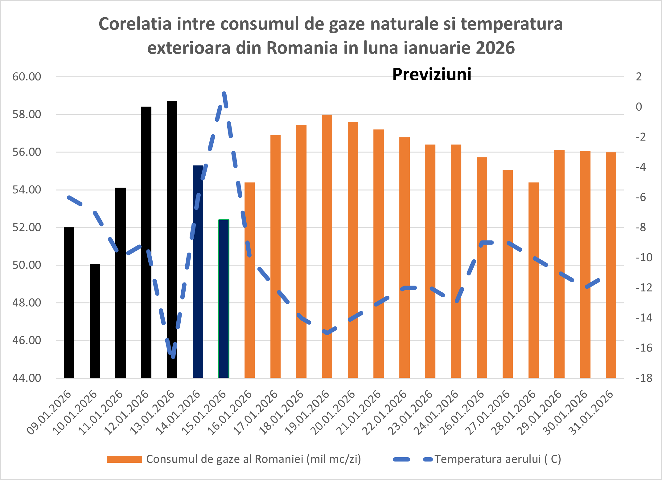 Când consumul sare de 57–58 milioane mc/zi (temperaturi sub -12C)), la care se adaugă 6 – 7 milioane mc/zi gaze care tranzitează România pentru Republica Moldova, intrăm într-o zonă fără elasticitate.