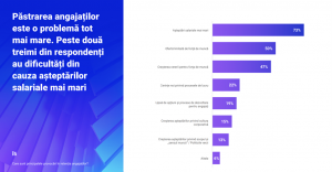 Atunci când vine vorba despre decizia de a rămâne într-o organizație, angajații au așteptări salariale mai mari, consideră 73% dintre respondenți, în timp ce 15% spun că angajații au așteptări mai mari în ceea ce privește cultura organizațională.
