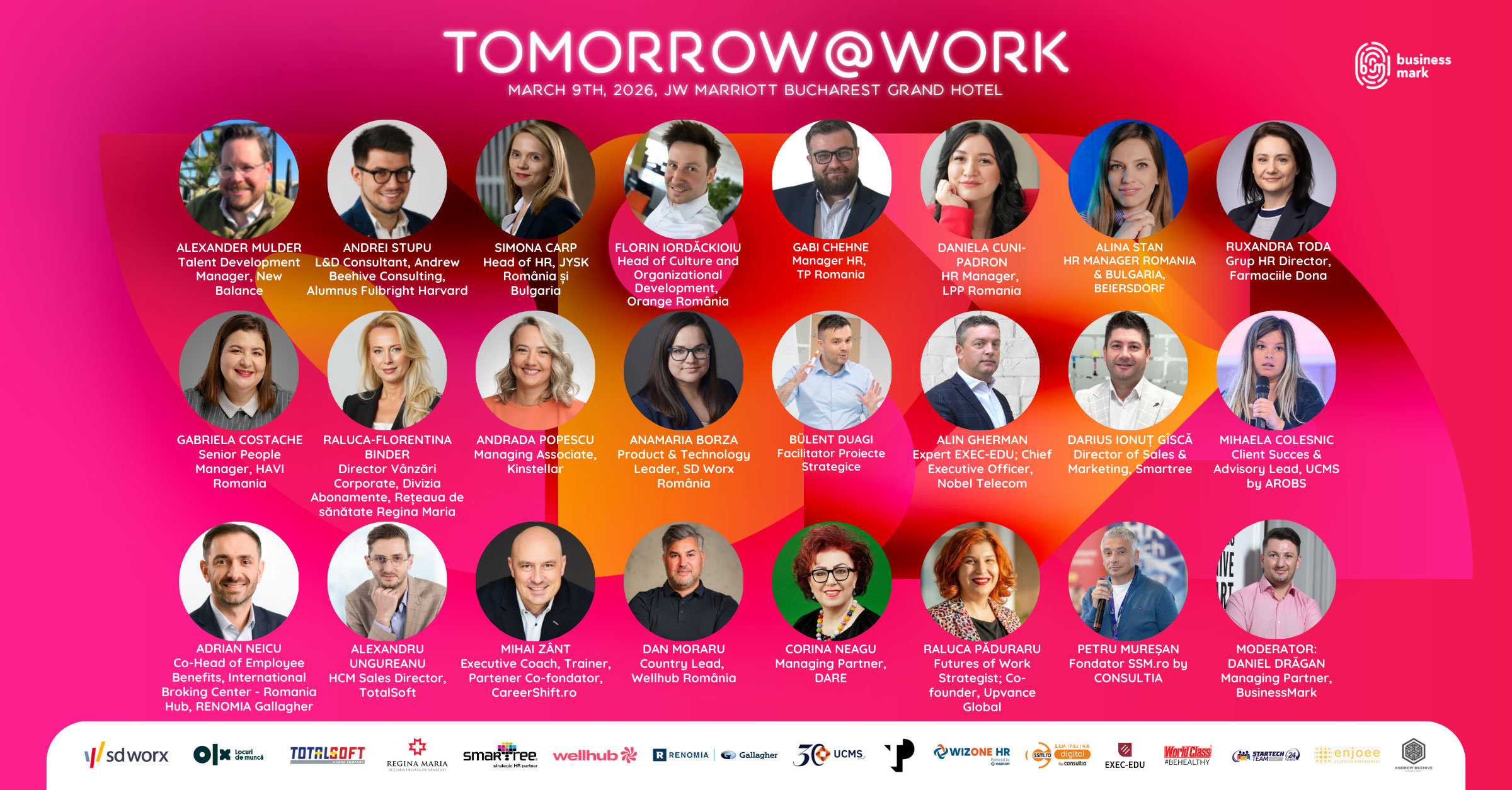 Evenimentul „Tomorrow@work” va fi moderat de Daniel Drăgan, Managing Partner, BusinessMark, și va include sesiuni de prezentări, două paneluri de dezbatere și o discuție 1-to-1.