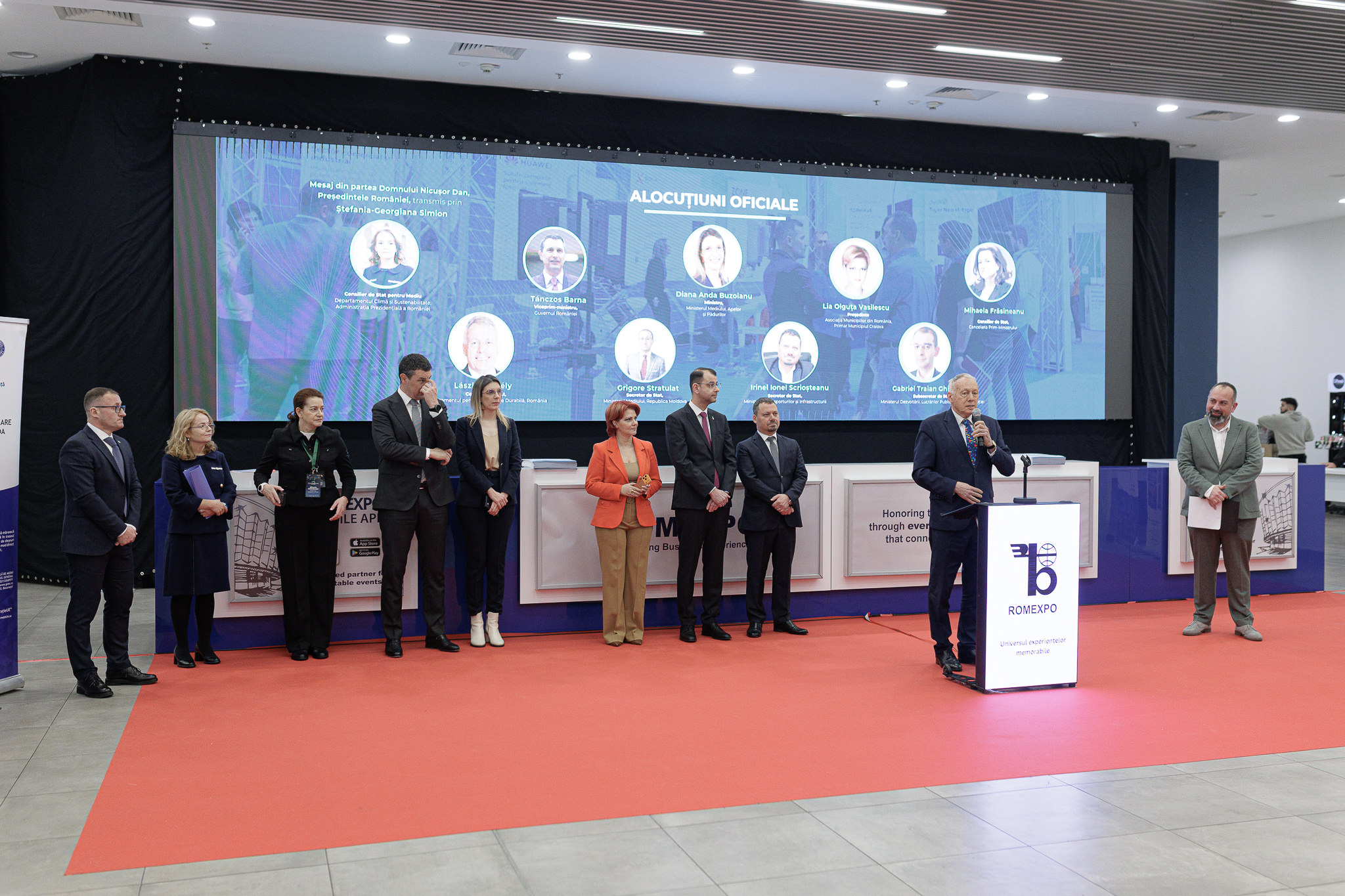 Evenimentul a debutat cu mesajul transmis de Preşedintele României, Nicuşor Dan, şi a continuat cu alocuţiunile oficiale susţinute de viceprim-ministrul Tánczos Barna, Diana Buzoianu, Ministrul Mediului, Apelor și Pădurilor, Lia Olguța Vasilescu, Președintele Asociației Municipiilor din România, Mihaela Frăsineanu, Consilier de Stat, Cancelaria Prim-Ministrului, László Borbély, Consilier de Stat, Departamentul pentru Dezvoltare Durabilă, Grigore Stratulat, Secretar de Stat, Ministerul Mediului, Republica Moldova, Irinel Ionel Scrioșteanu, Secretar de Stat, Ministerul Transporturilor și Infrastructurii şi Gabriel Traian Ghilea, Subsecretar de Stat, Ministerul Dezvoltării, Lucrărilor Publice și Administrației. Prezenţa acestora a reconfirmat rolul strategic al GREEN ENERGY EXPO & ROMENVIROTEC în agenda dezvoltării sustenabile din România şi din regiune.
