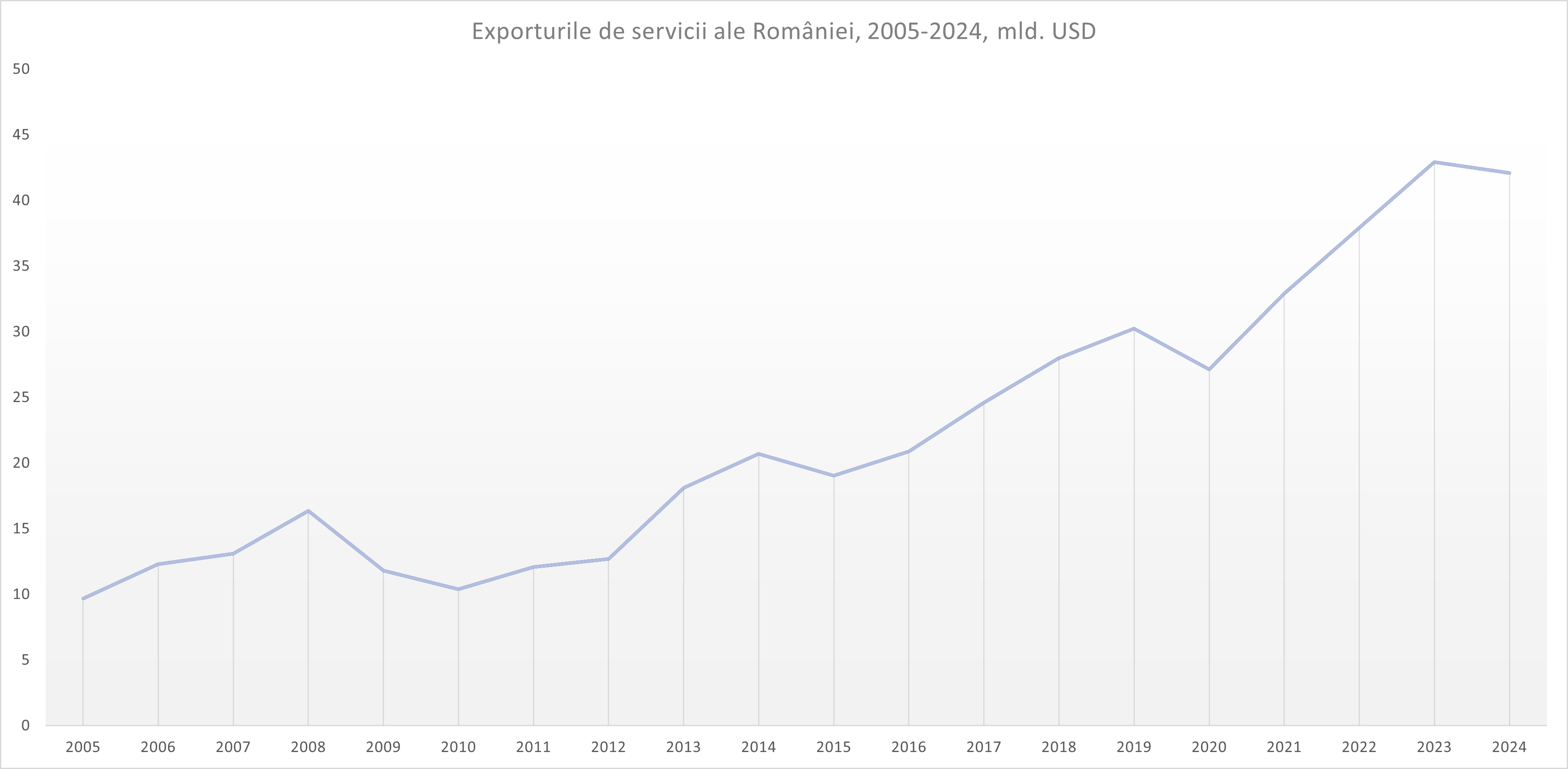 Contrar percepției generale, România exportă astăzi de 20 ori mai mult decât în perioada comunistă. Exporturile de bunuri ale României au stagnat în întreaga perioadă comunistă și au crescut spectaculos doar după Revoluție, de la 5 mld. USD în 1990 la 100 miliarde USD în 2024. Dacă adăugăm și exporturile de servicii, care au atins 42 mld. USD în 2024, atunci exporturile României totale ale României au ajuns anul trecut la 140 mld. USD.